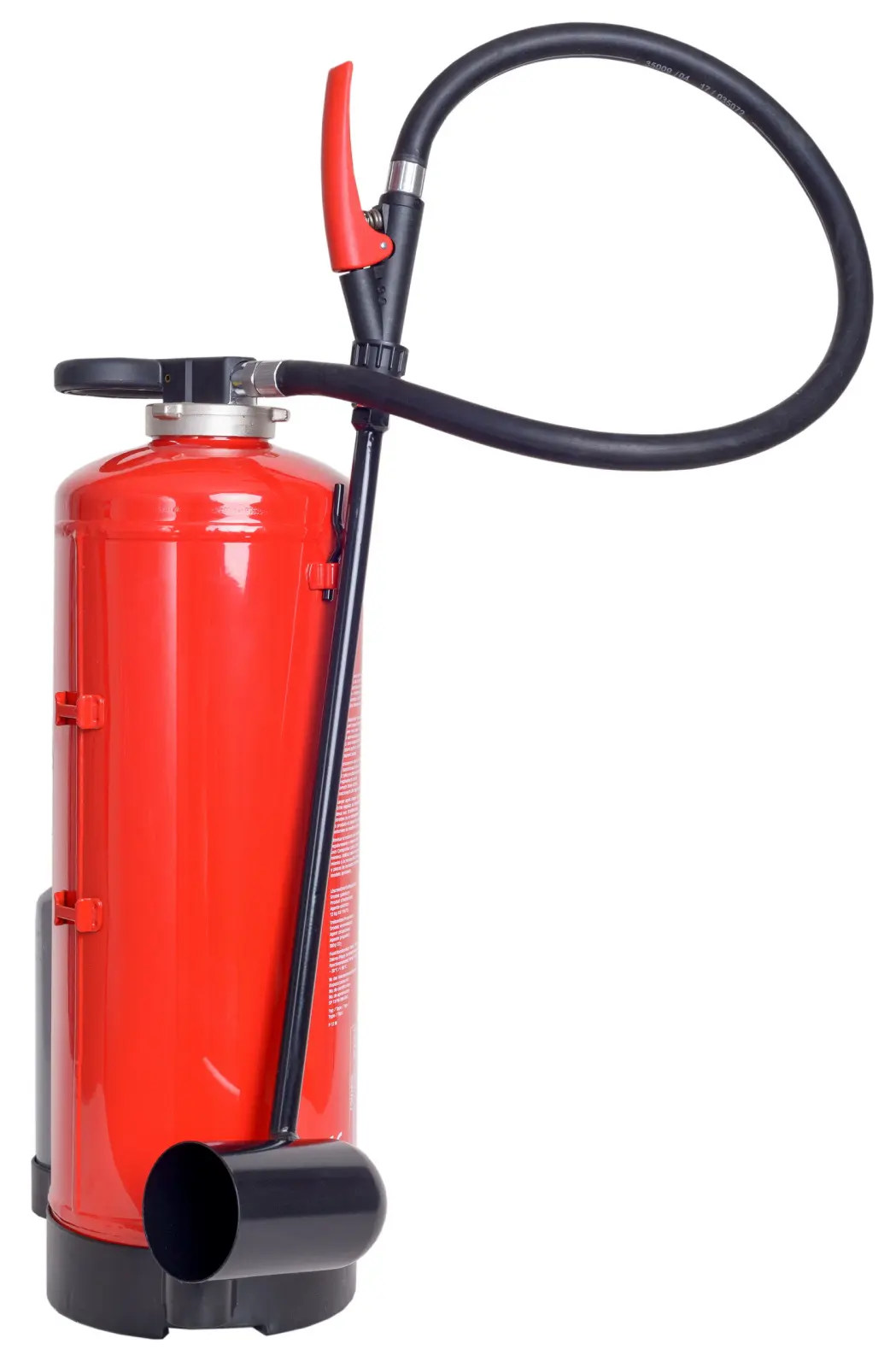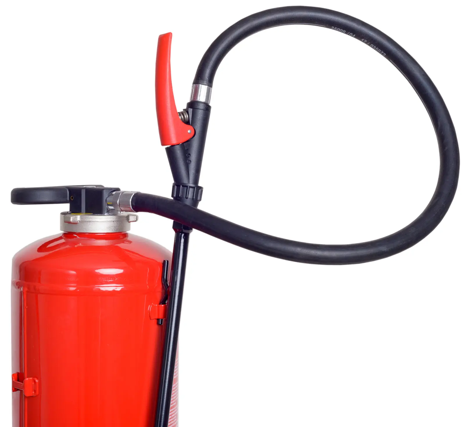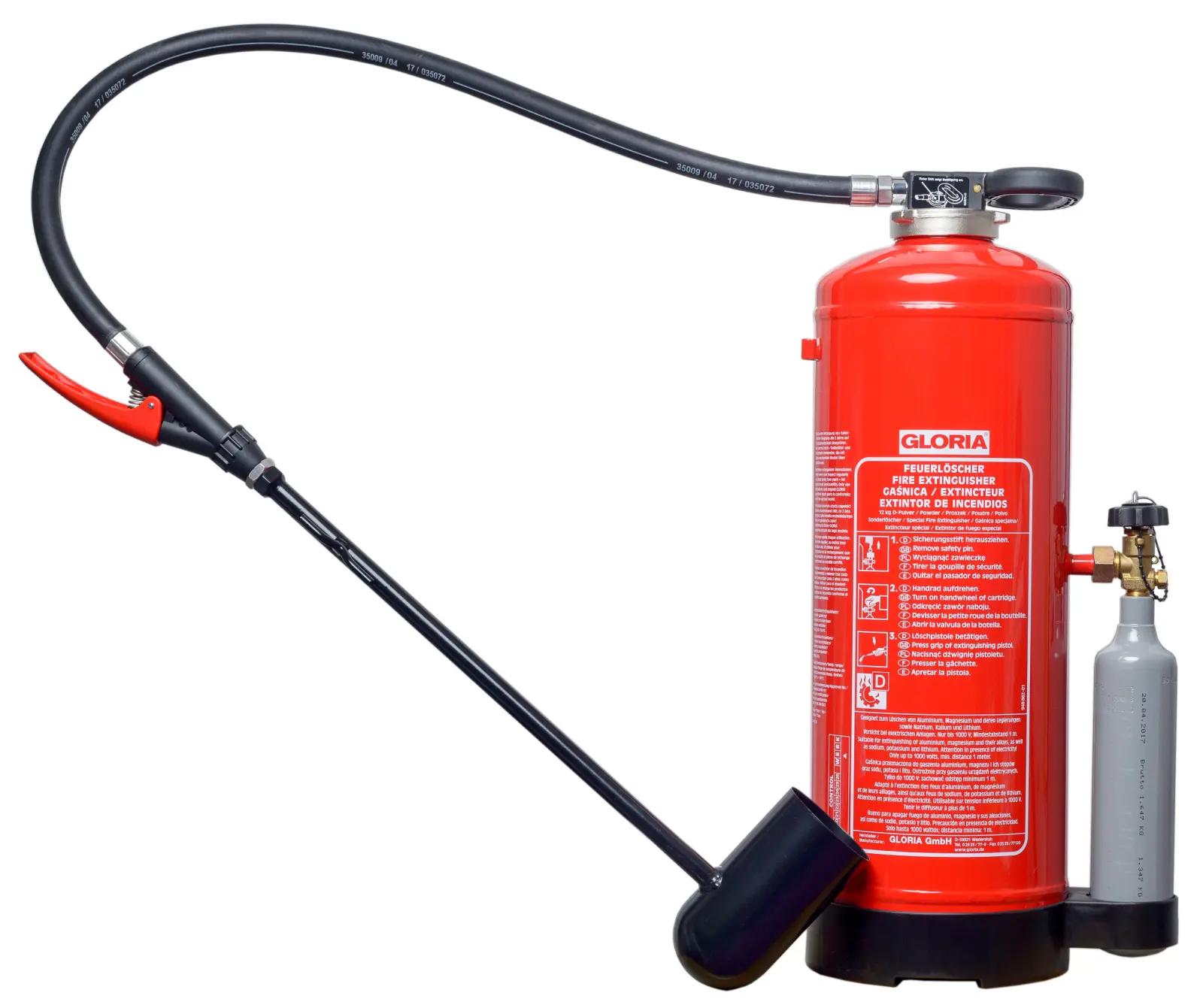- gaśnica wyposażona w długą lancę z dyszą zapewniającą lepszą aplikację proszku bezpośrednio nad pożarem metalu, przy zachowaniu bezpiecznej odległości