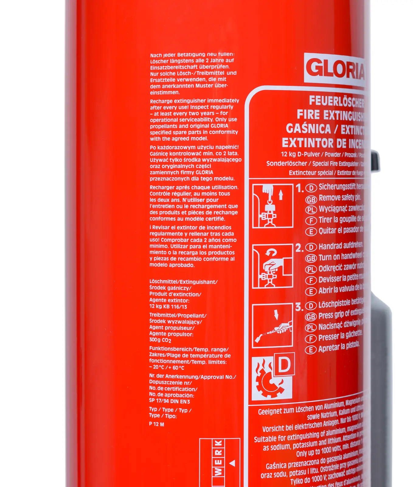 Gaśnica do metali 12kg GP-12z D z wieszakiem typ: P 12 M