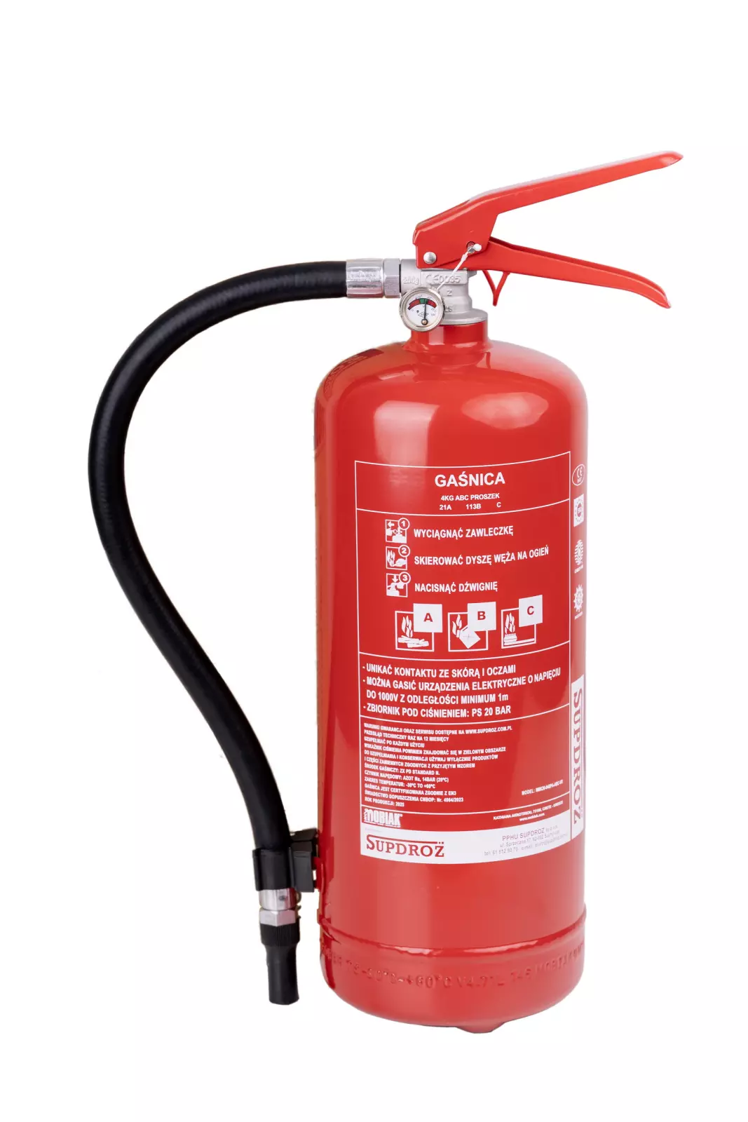Najkorzystniejsza cenowo gaśnica proszkowa 4 kg, z wieszakiem, przeznaczona do gaszenia pożarów grup: