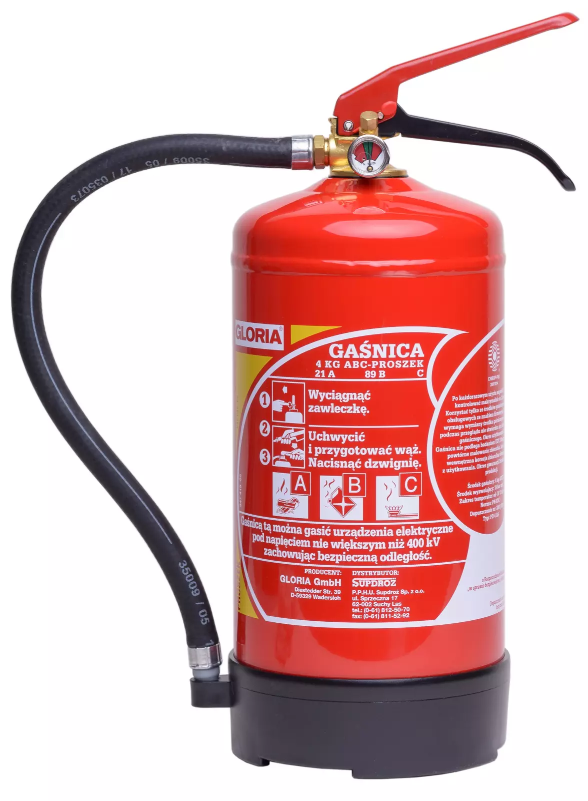- gaśnica przeznaczona do gaszenia pożarów grup ABC