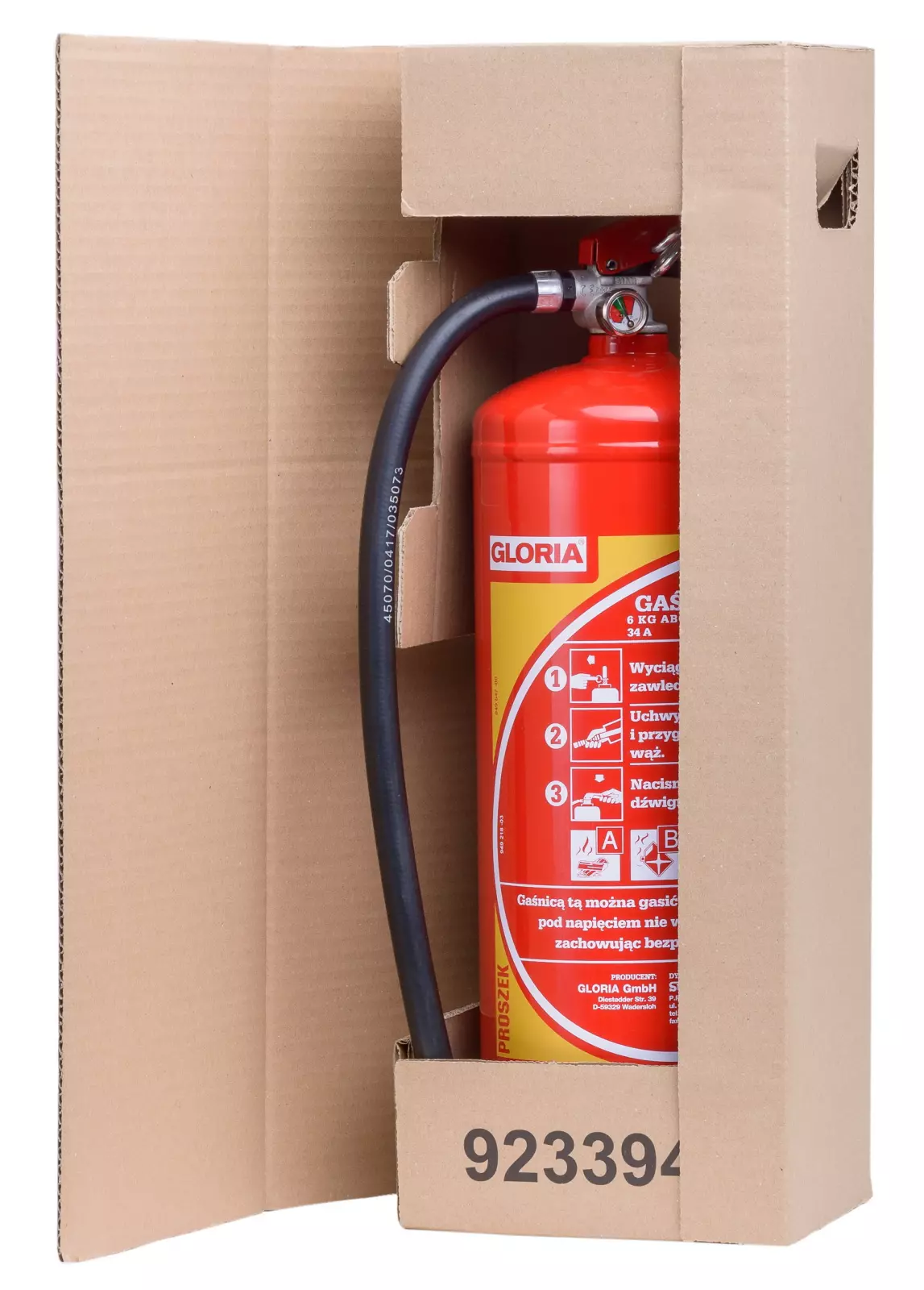 - każda gaśnica pakowana jest fabrycznie w karton, celem jej zabezpieczenia przed uszkodzeniami w transporcie