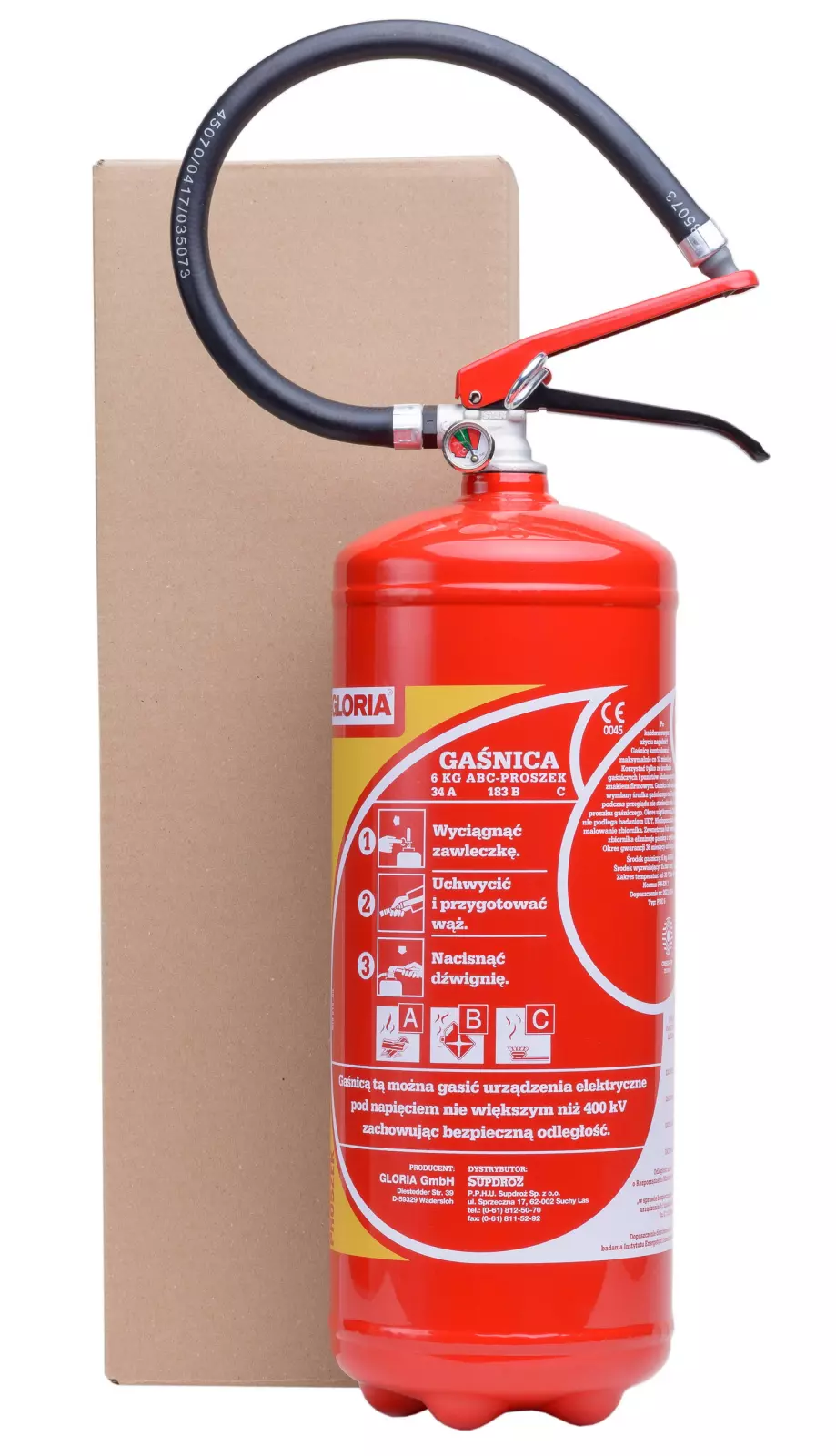 - gaśnica przeznaczona do gaszenia pożarów grup ABC