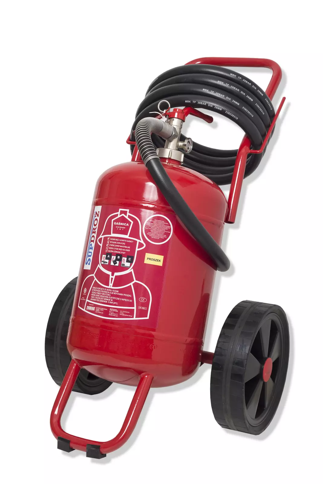 Najkorzystniejsza cenowo gaśnica proszkowa, przewoźna 25 kg, przeznaczona do gaszenia pożarów grup: