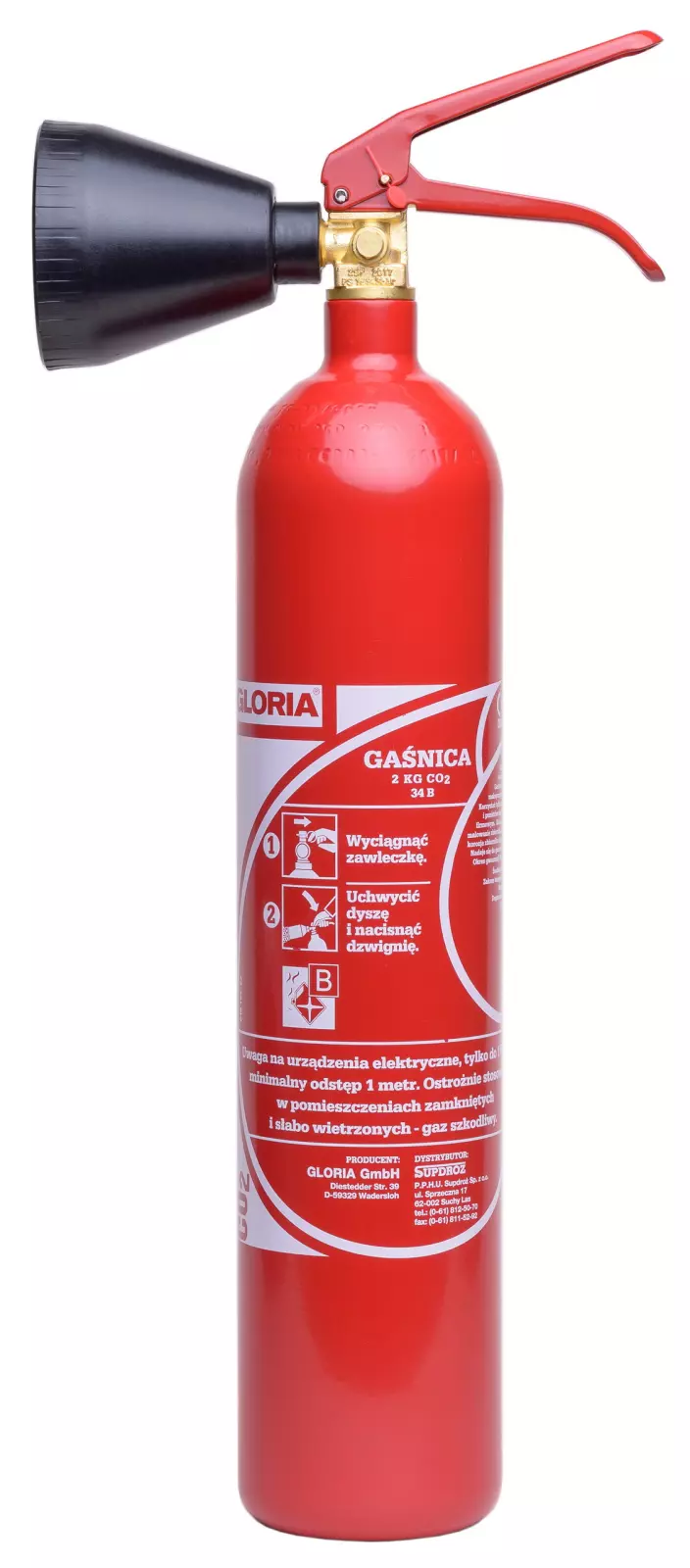 - gaśnica CO2 przeznaczona do gaszenia pożarów grupy B