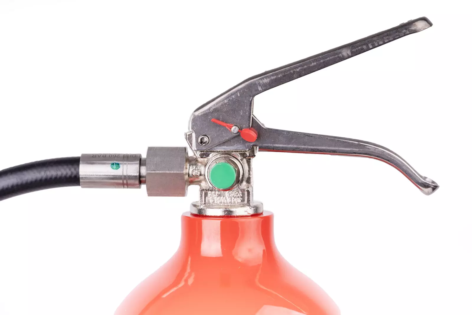 - dźwignia zaworu odcinającego umożliwia kontrolę dozowania środka gaśniczego