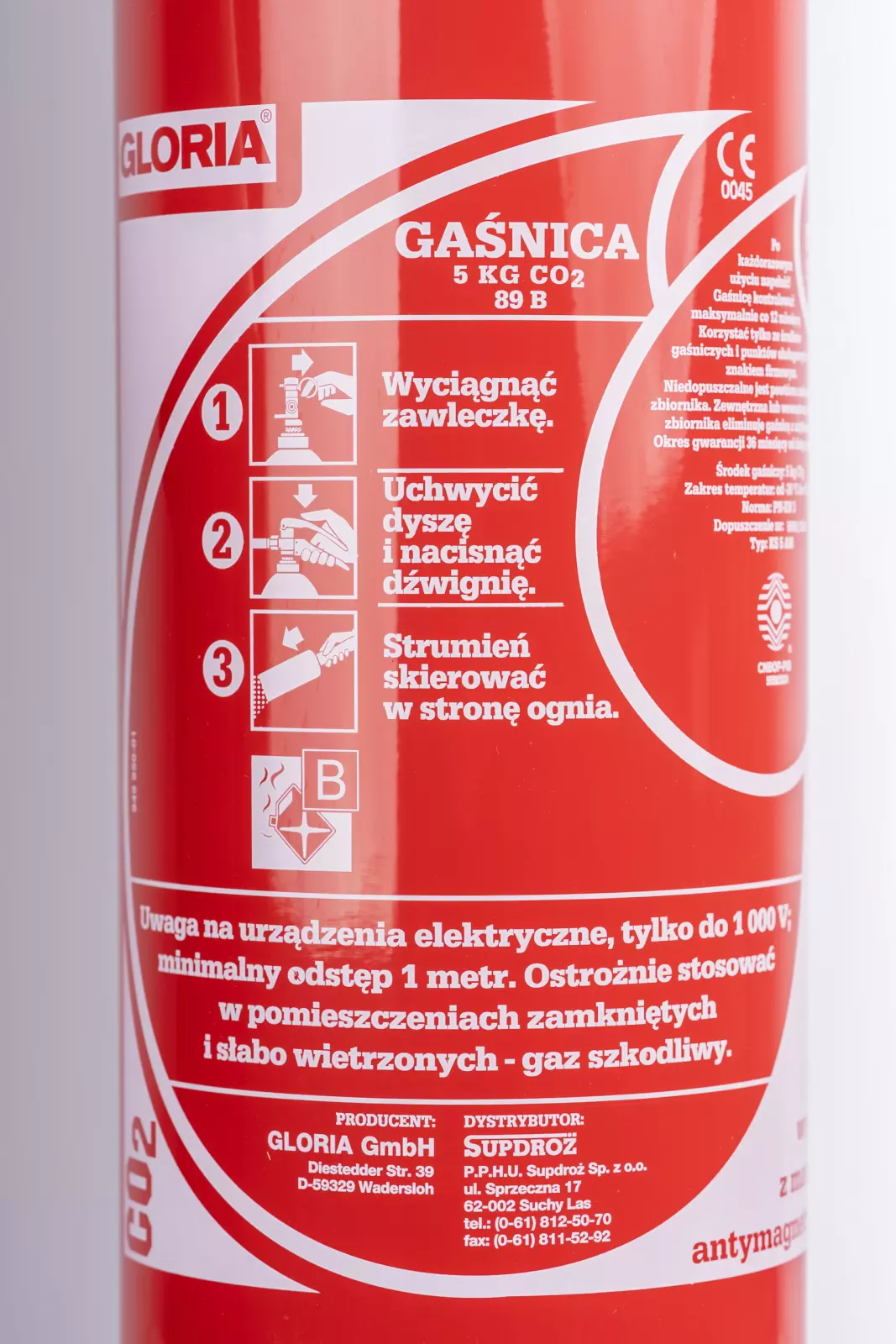 - gaśnica CO2 przeznaczona do gaszenia pożarów grupy B