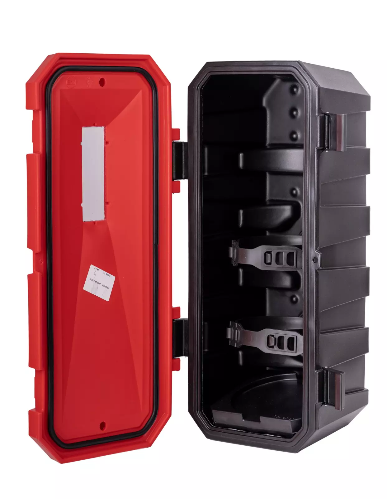Pojemnik Stabilo to hermetyczna skrzynia służąca do przechowywania i ochrony gaśnicy proszkowej 6kg, przystosowana do montażu zewnętrznego w samochodach dostawczych przyczepach i naczepach. Stanowi niezbędne wyposażenie pojazdu w przypadku transportu materiałów niebezpiecznych, zgodnie z konwencją ADR.